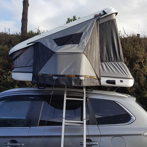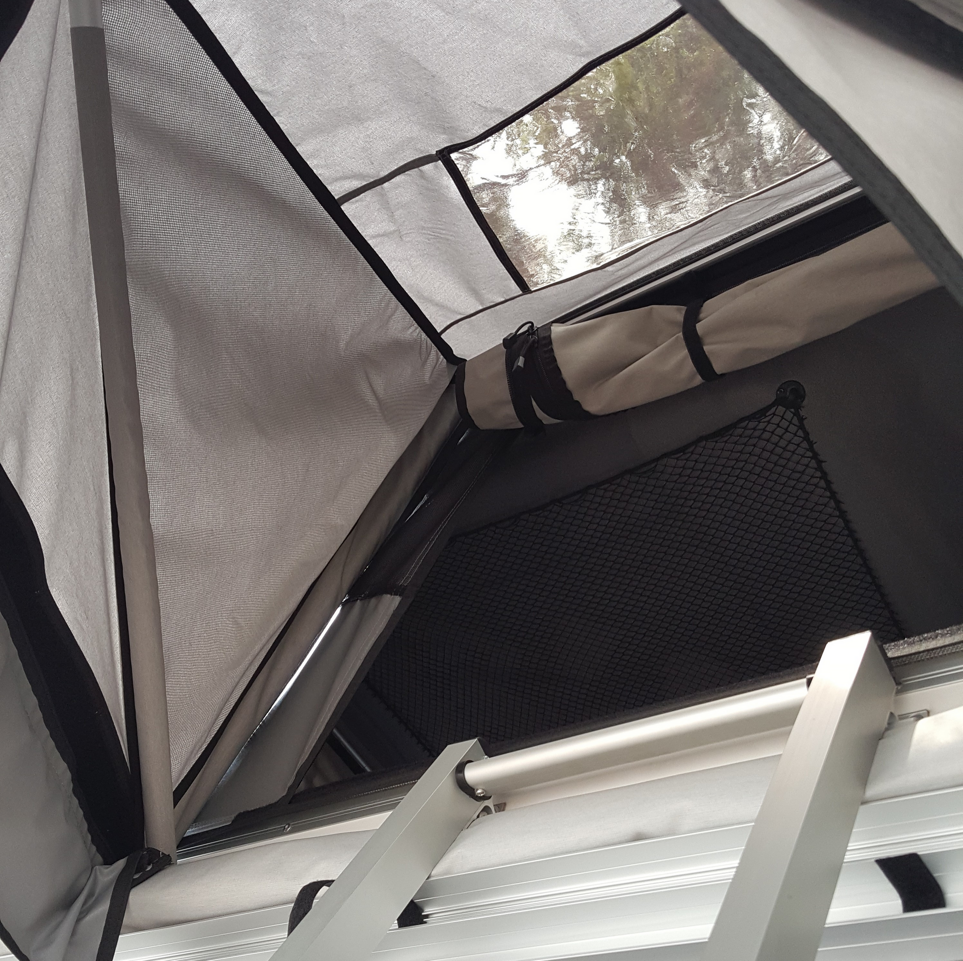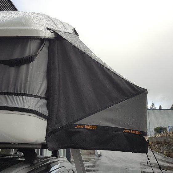 Tunnel permettant d’accéder à la tente tout en restant abrité de la pluie et des intempéries. Le tunnel possède une ouverture qui permet le passage de l’échelle, celle-ci abritée par le tunnel relié à l’ouverture de la tente par un système de velcros. Il est conçu dans la même toile que les tentes de toit. Le tissu de grande qualité comporte 6 couches qui bénéficient d'un traitement aluminium dans la masse, pour refléter les rayons du soleil et les UV et ainsi limiter la chaleur à l'intérieur de l'espace de vie. Toile 100% polyester imperméable à l'eau et perméable à l'air.