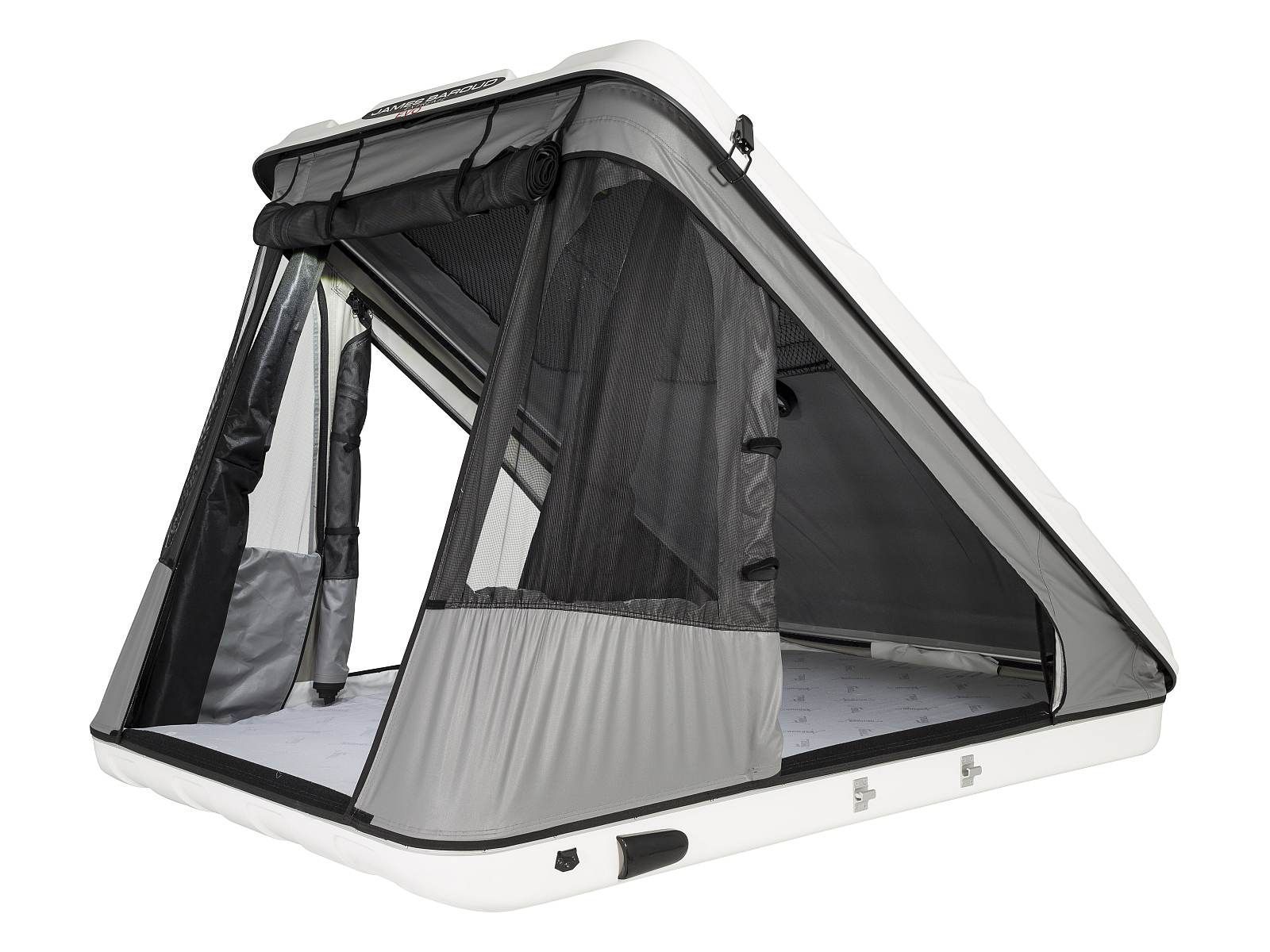 L’ouverture de la tente se fait automatiquement en moins de 5 secondes au moyen de deux vérins James Baroud, montés sur rotules, actionnant des bras articulés protégés par une housse en toile. La fermeture est réalisée en 15 secondes par une seule personne. Un élastique incorporé autour de la toile assure le retrait de celle-ci dans les coques pendant la fermeture.